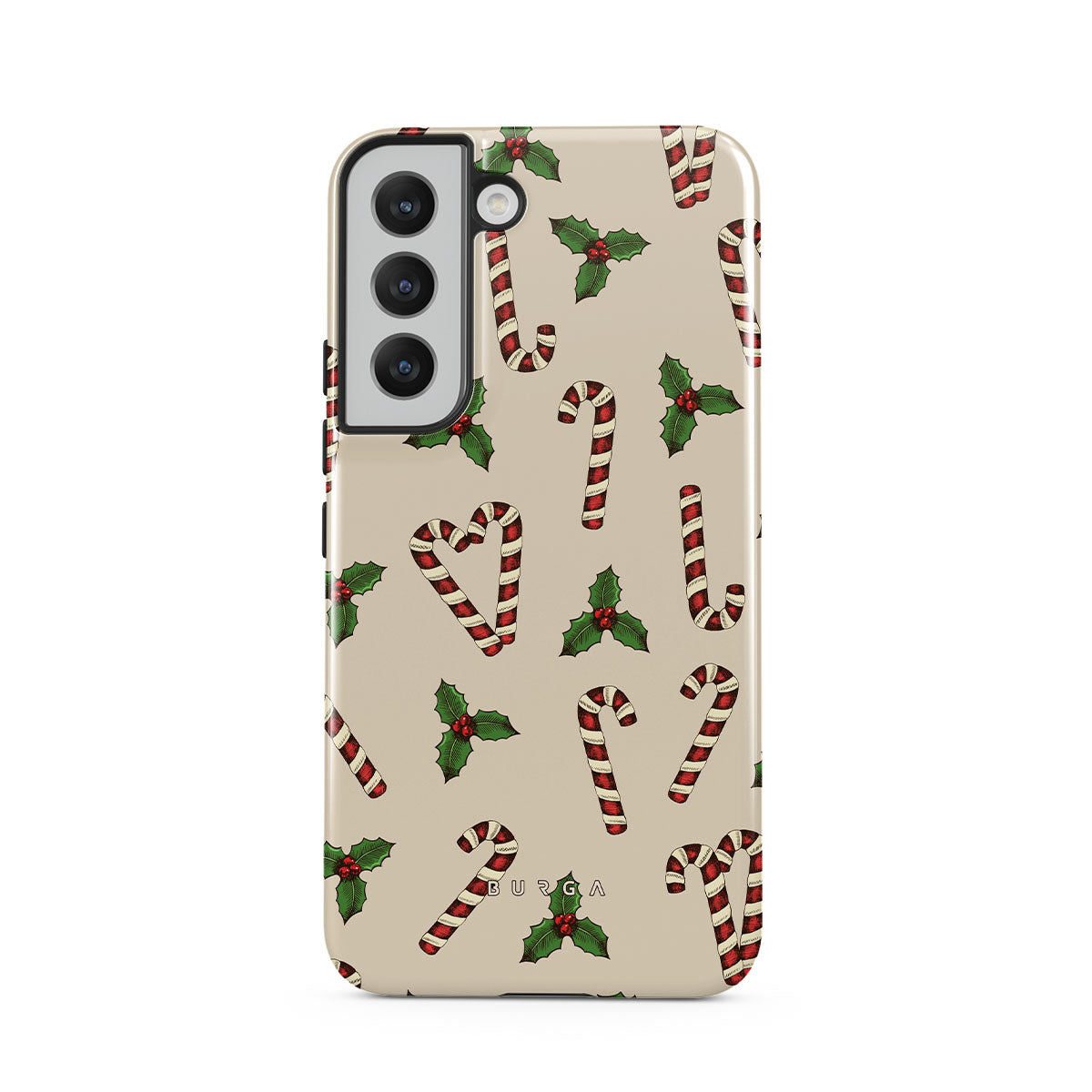 El diseño presenta: bastones de caramelo, acebo, verde, blanco, patrón navideño