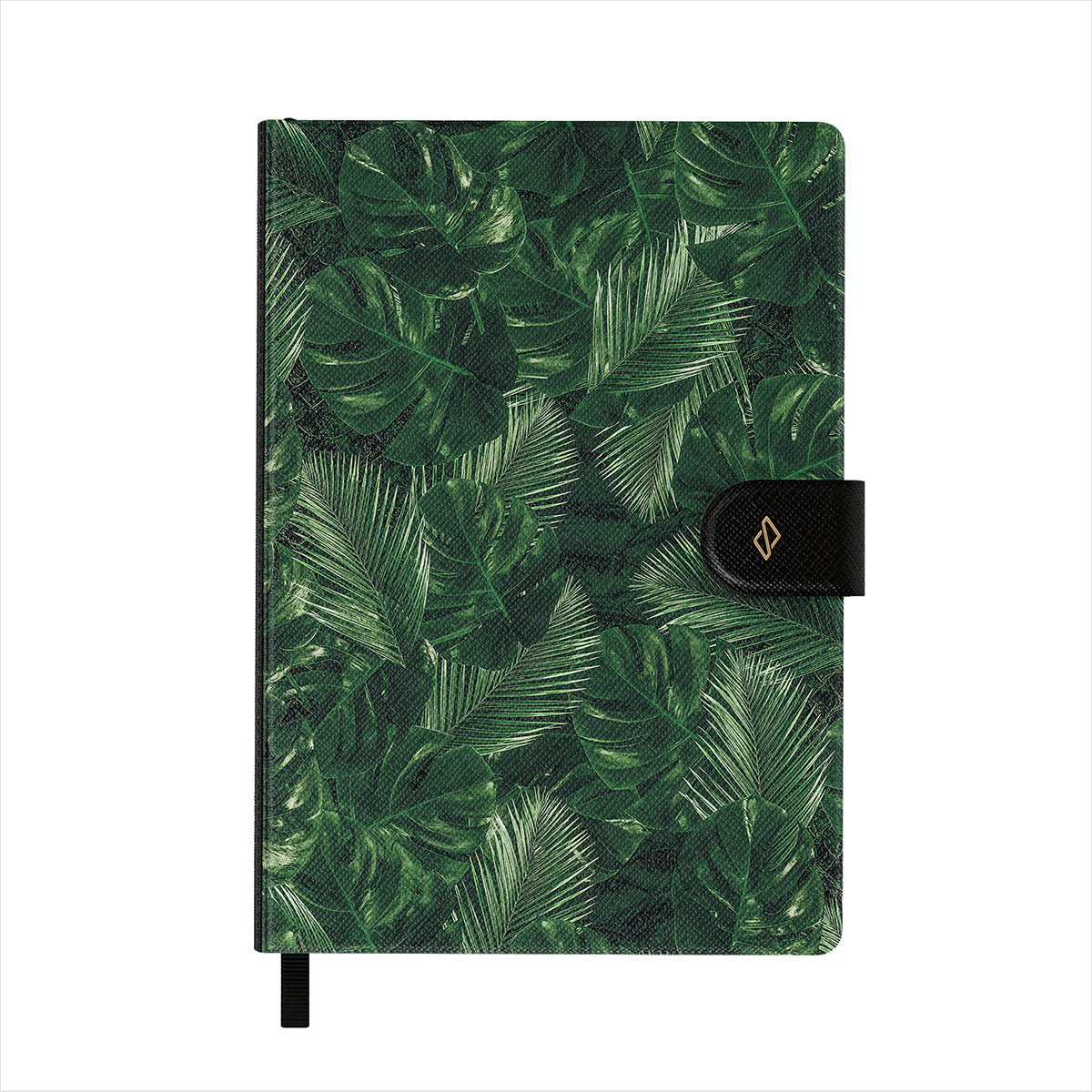 La portada está decorada con los diseños de BURGA impresos en piel sintética vegana. Incluye una elegante cinta negra marcapáginas.