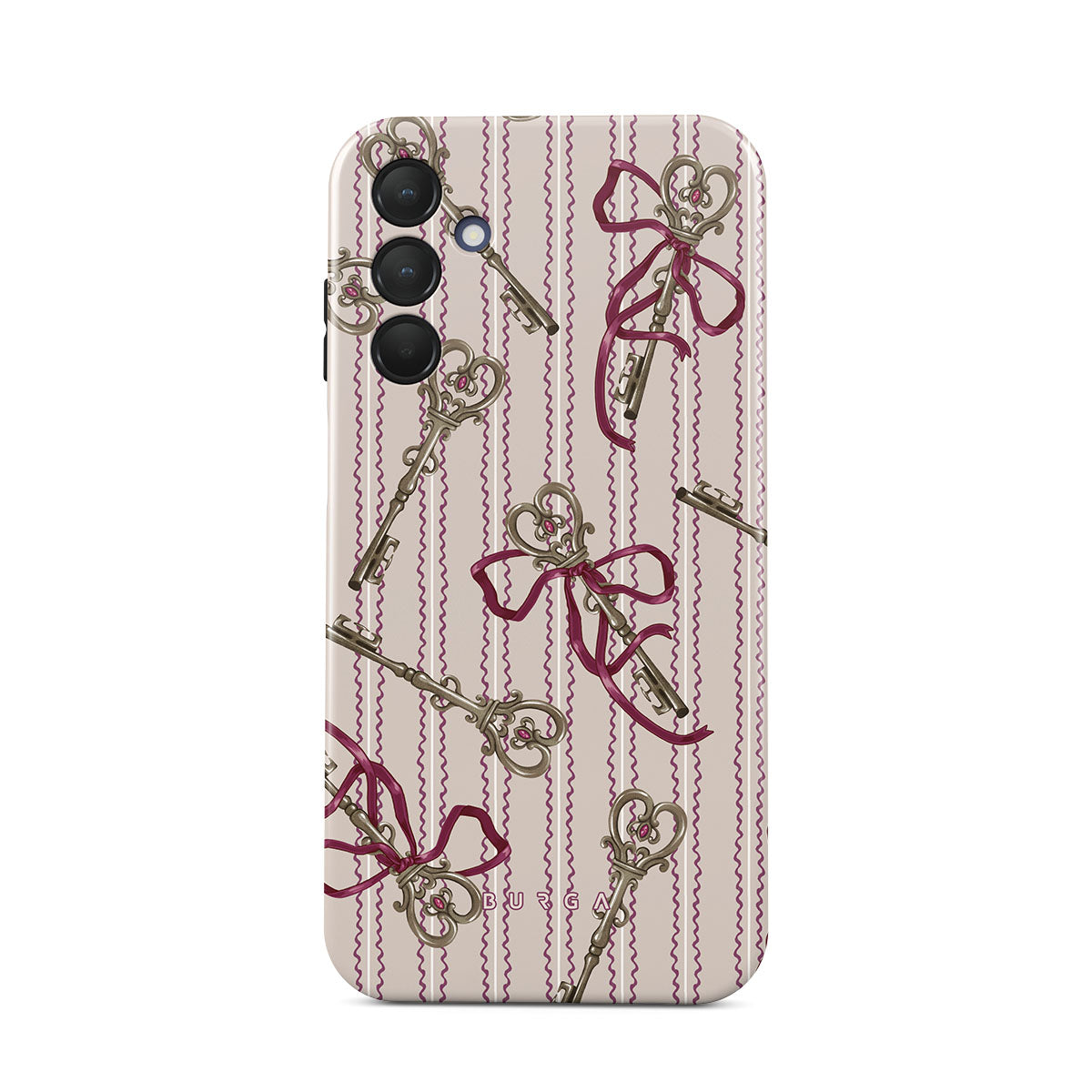 En este diseño: llaves antiguas, lazos, cintas rosas, fondo a rayas