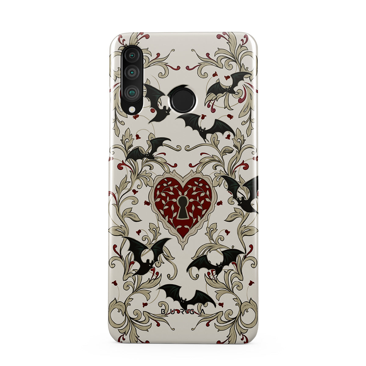 En este diseño: corazón, candado, murciélagos, motivos góticos
