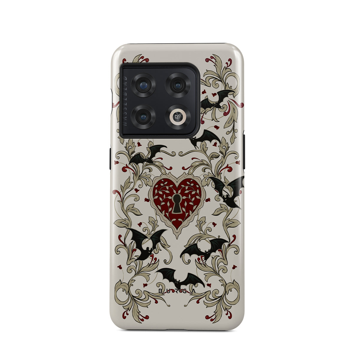 En este diseño: corazón, candado, murciélagos, motivos góticos