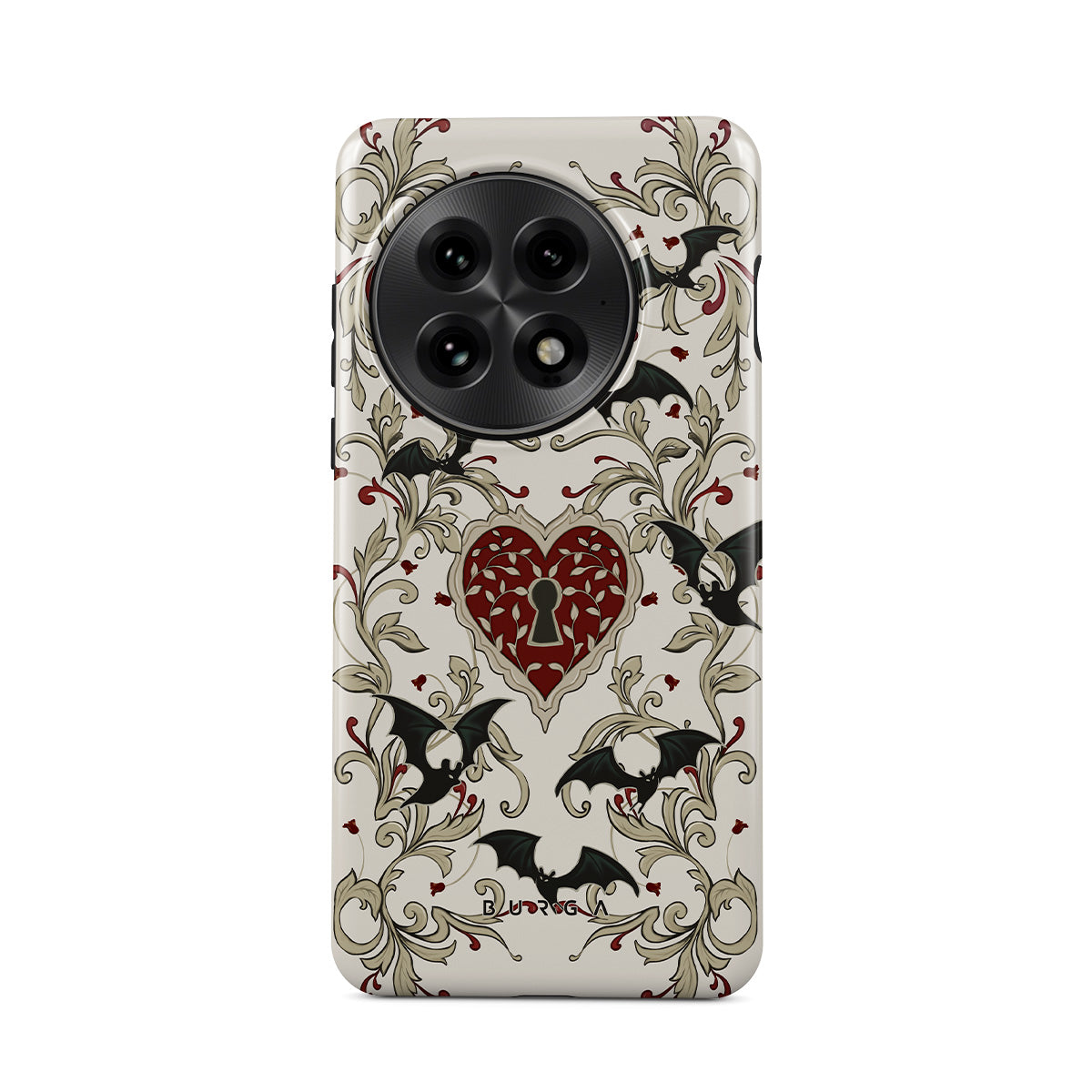 En este diseño: corazón, candado, murciélagos, motivos góticos