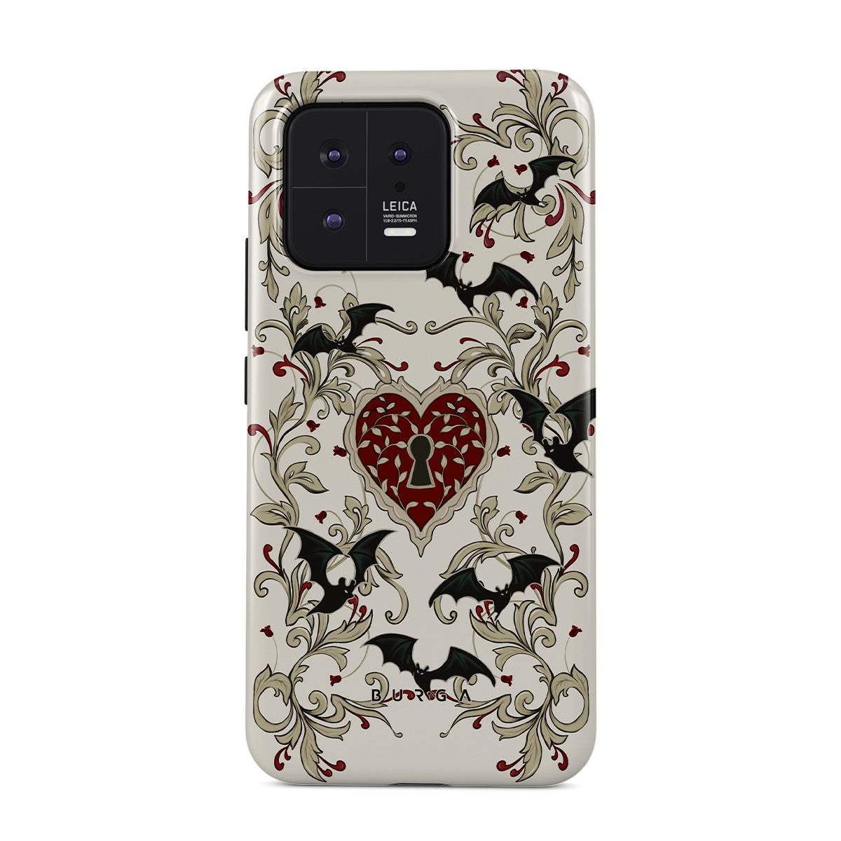 En este diseño: corazón, candado, murciélagos, motivos góticos