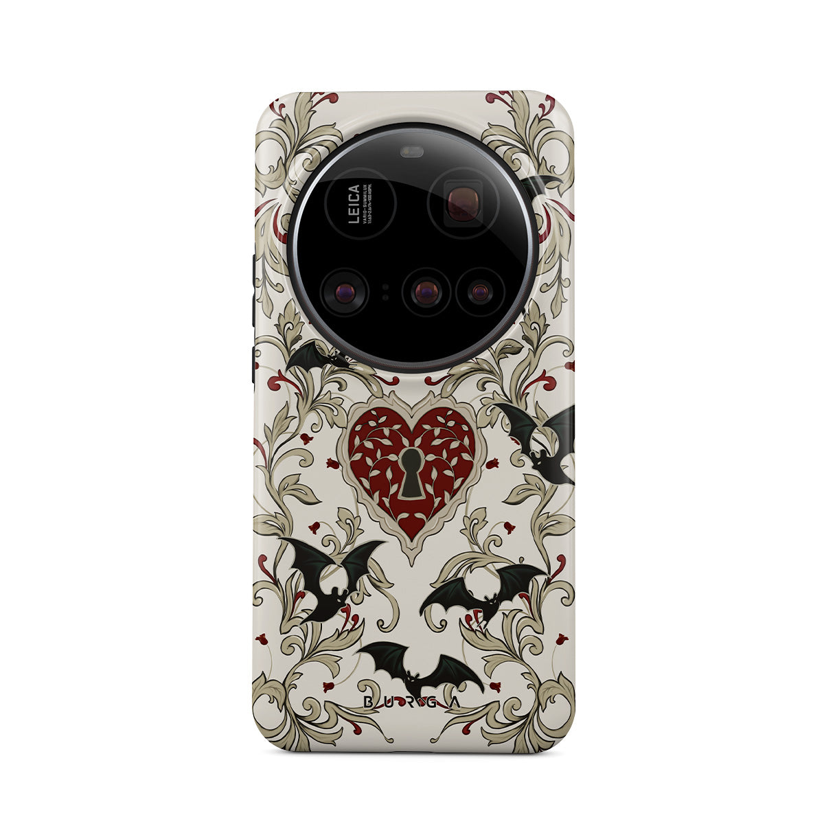 En este diseño: corazón, candado, murciélagos, motivos góticos