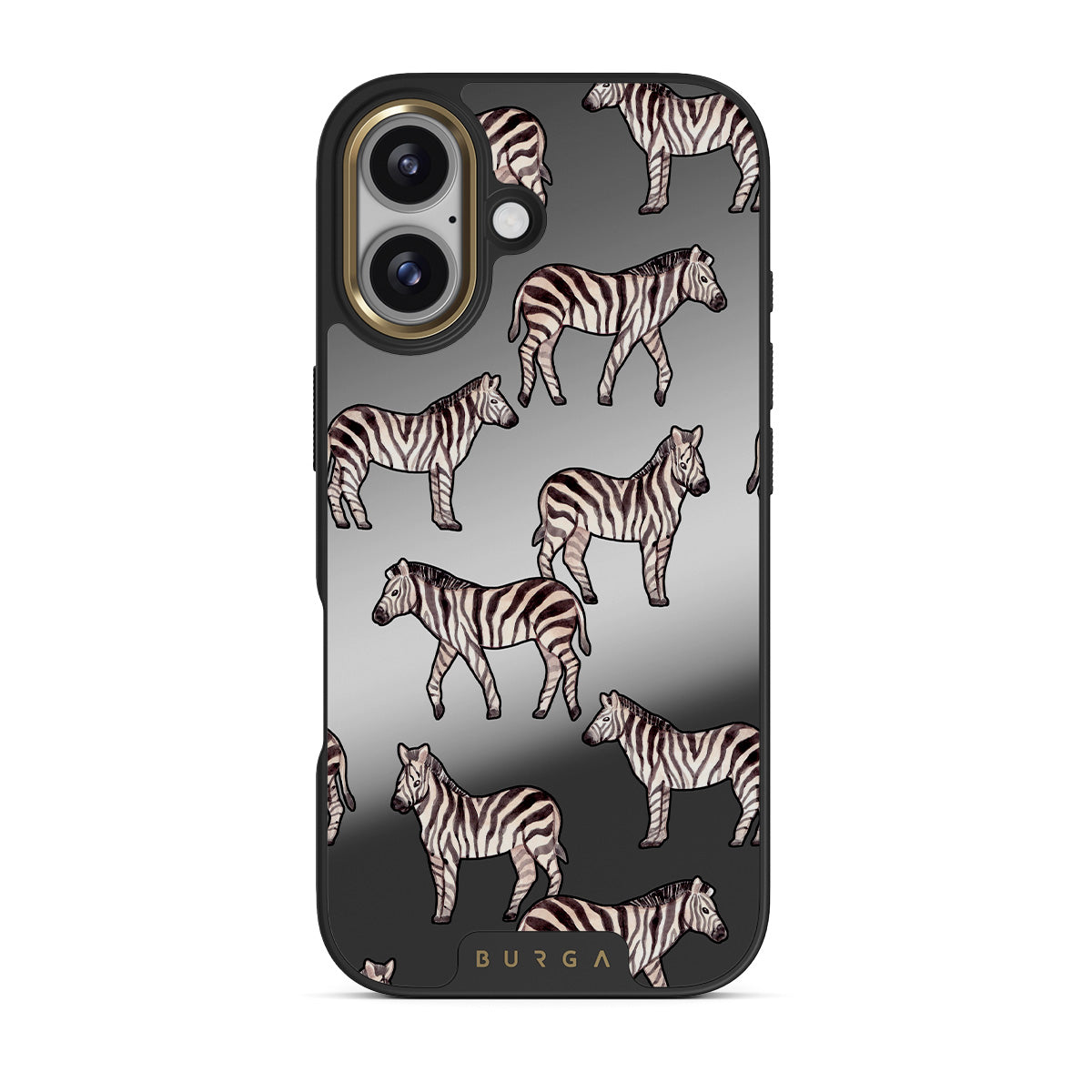 En este diseño: cebras, estampado animal, rayas blancas y negras, espejo