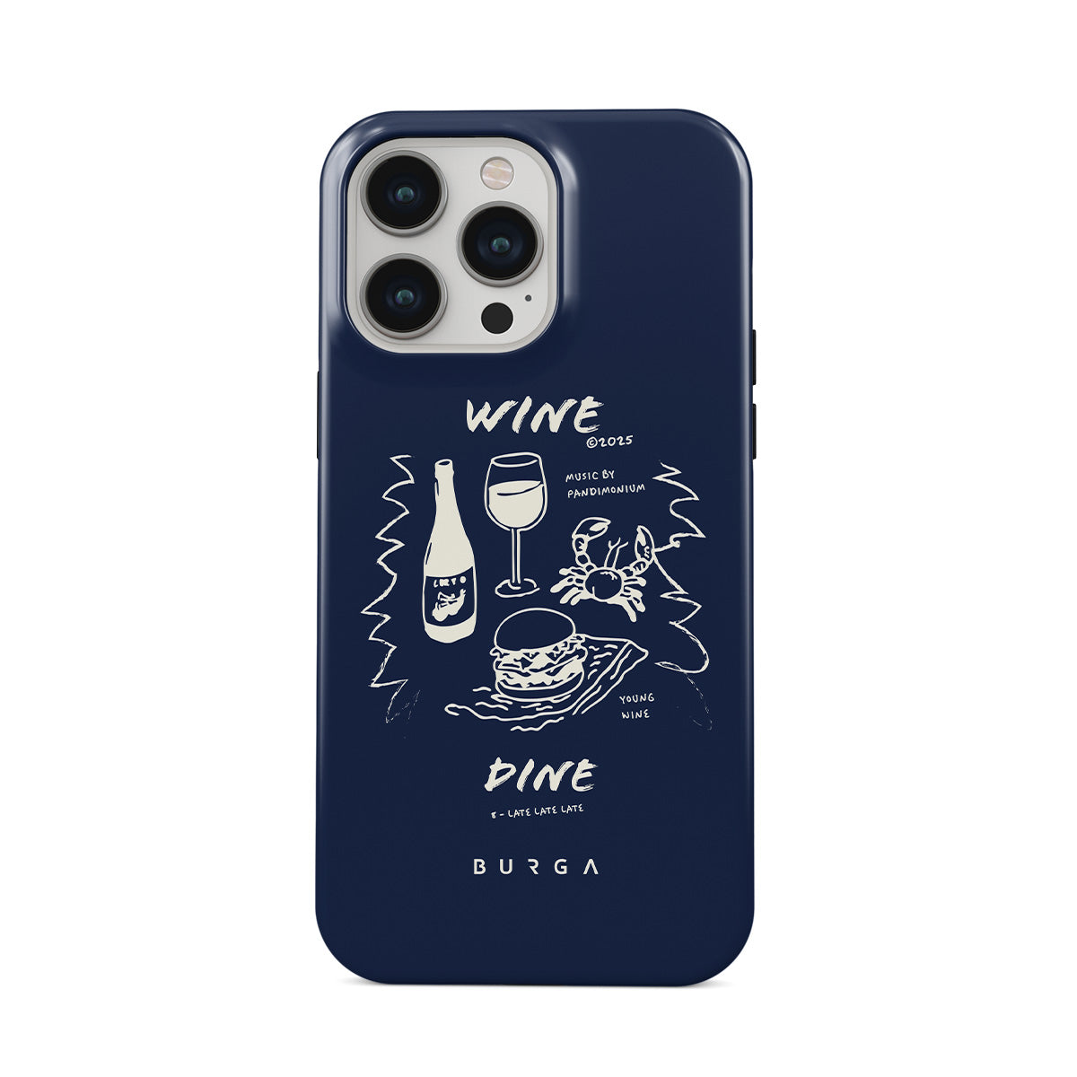 En este diseño: copas de vino, comida, gastronomía, ilustraciones minimalistas y texto