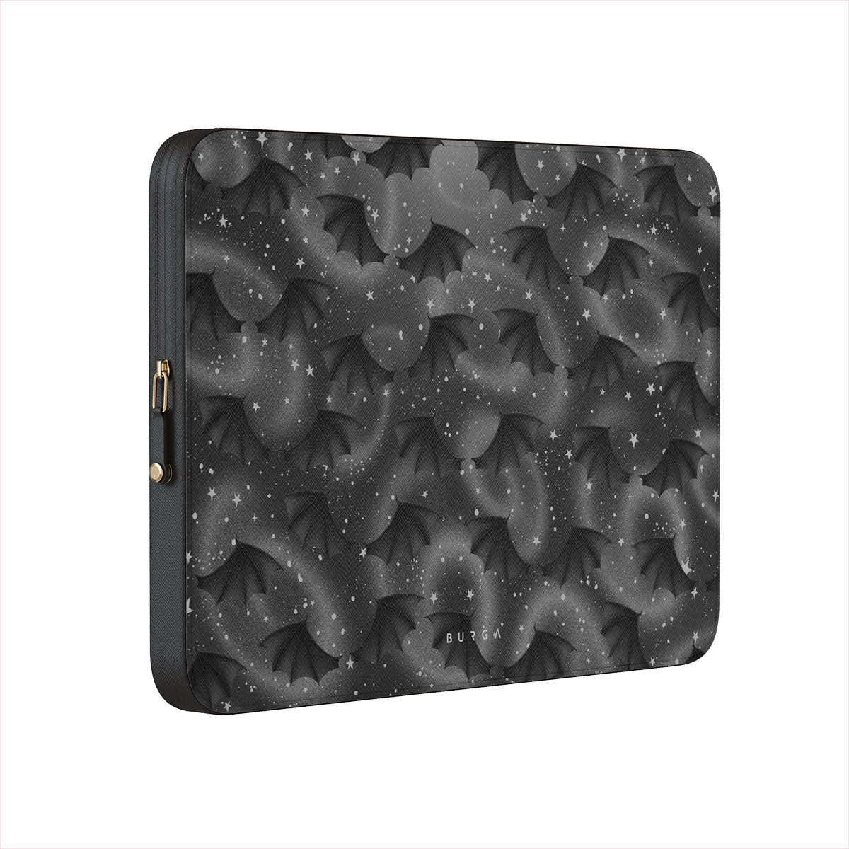En este diseño: alas de murciélago, estrellas, remolinos místicos, cielo negro