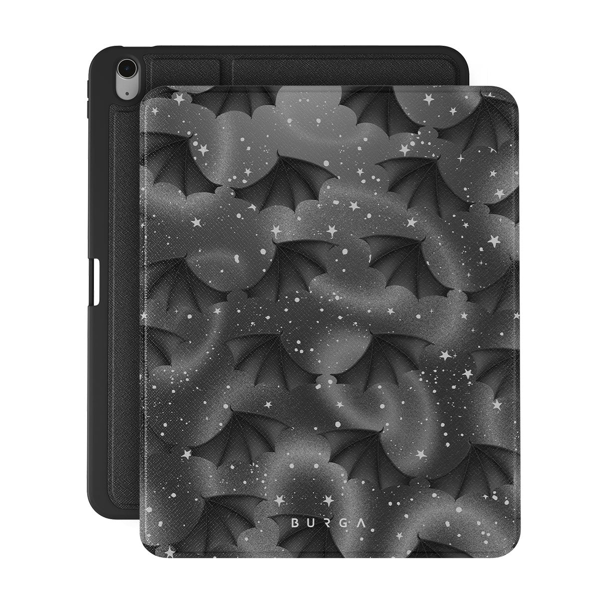 En este diseño: alas de murciélago, estrellas, remolinos místicos, cielo negro