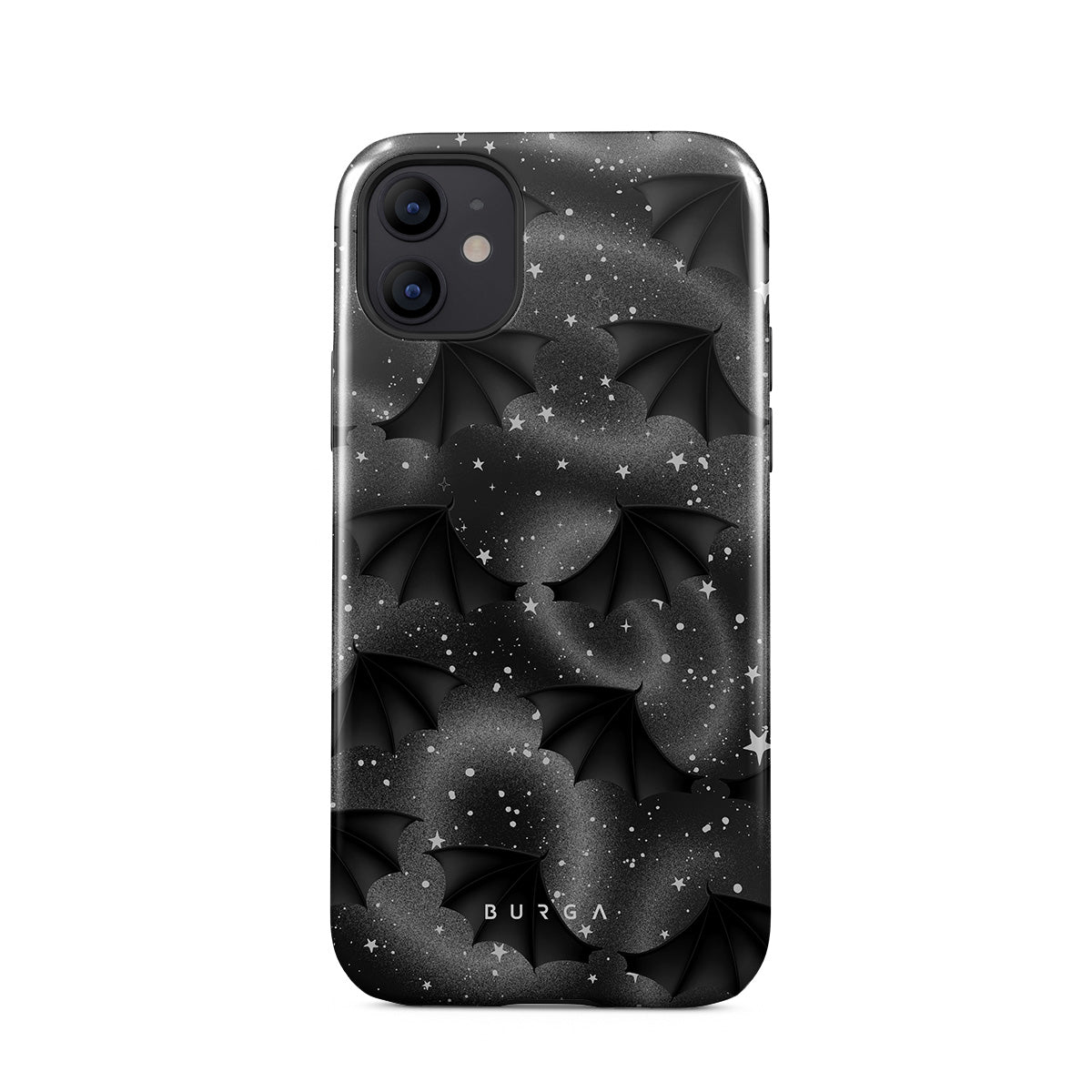 En este diseño: alas de murciélago, estrellas, remolinos místicos, cielo negro
