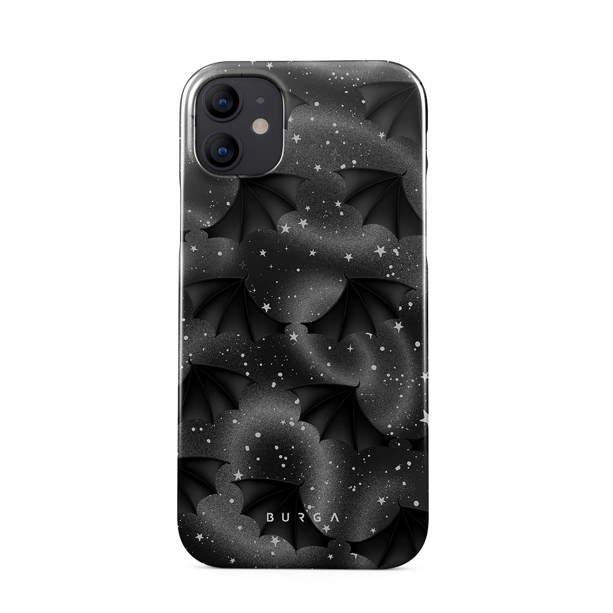 En este diseño: alas de murciélago, estrellas, remolinos místicos, cielo negro