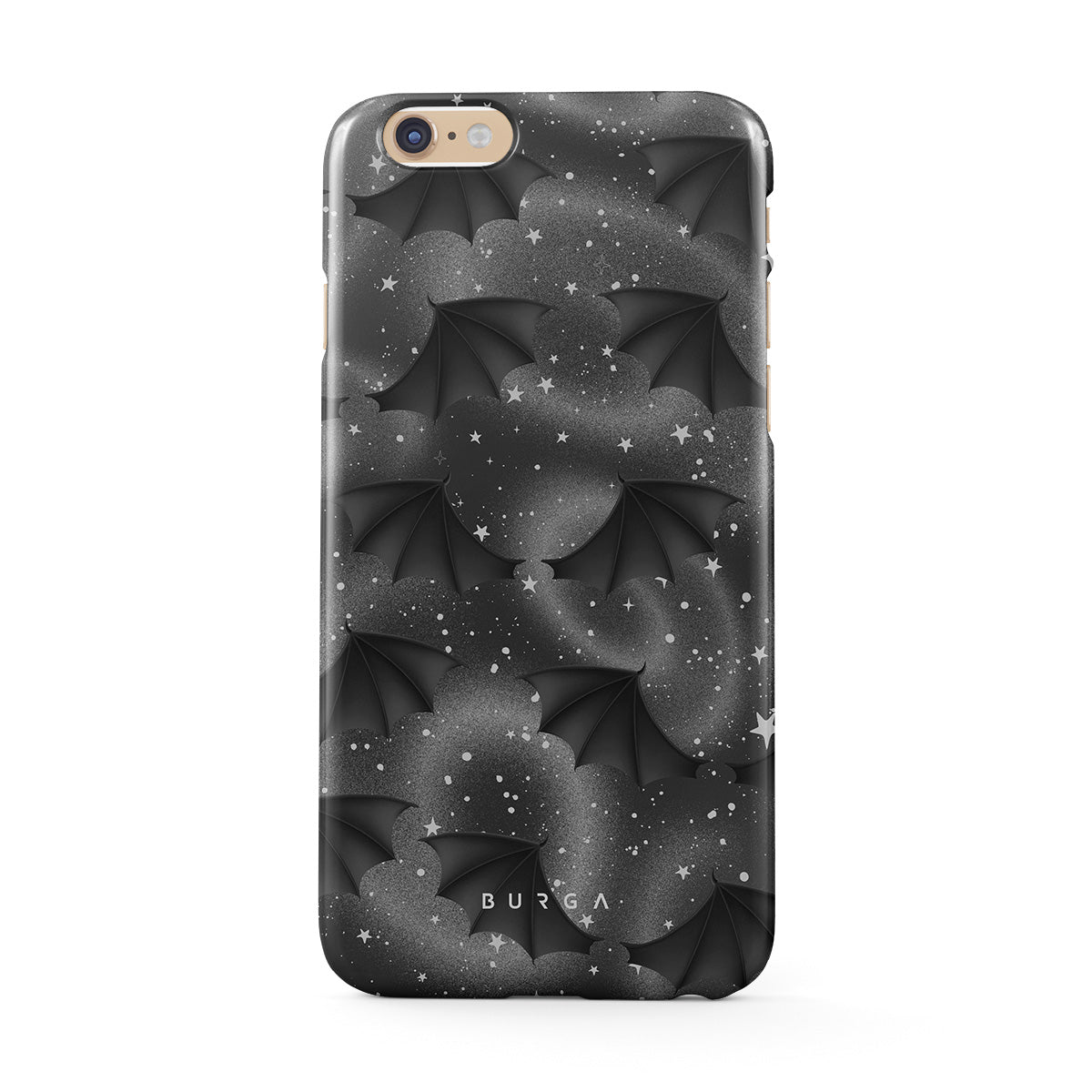 En este diseño: alas de murciélago, estrellas, remolinos místicos, cielo negro