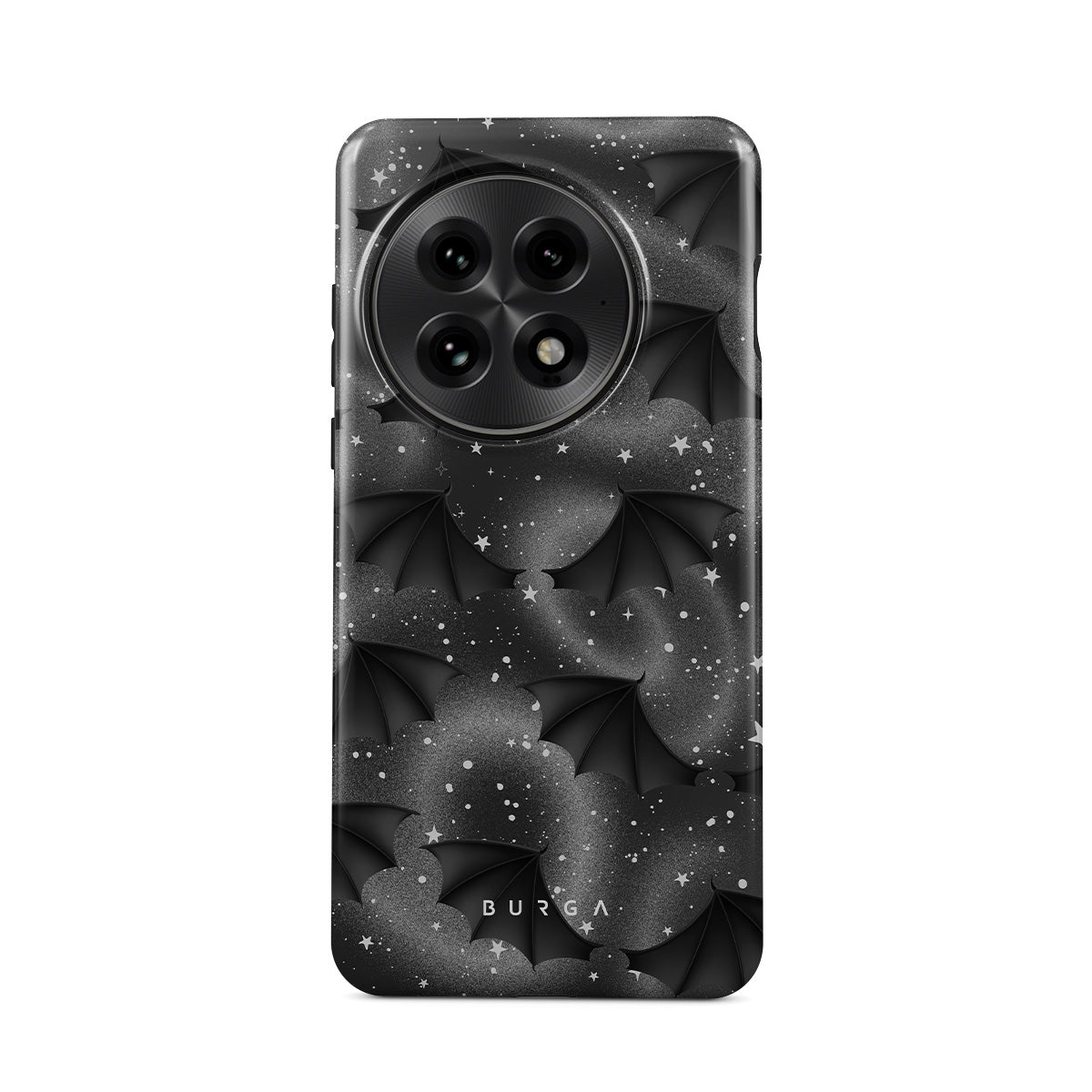 En este diseño: alas de murciélago, estrellas, remolinos místicos, cielo negro