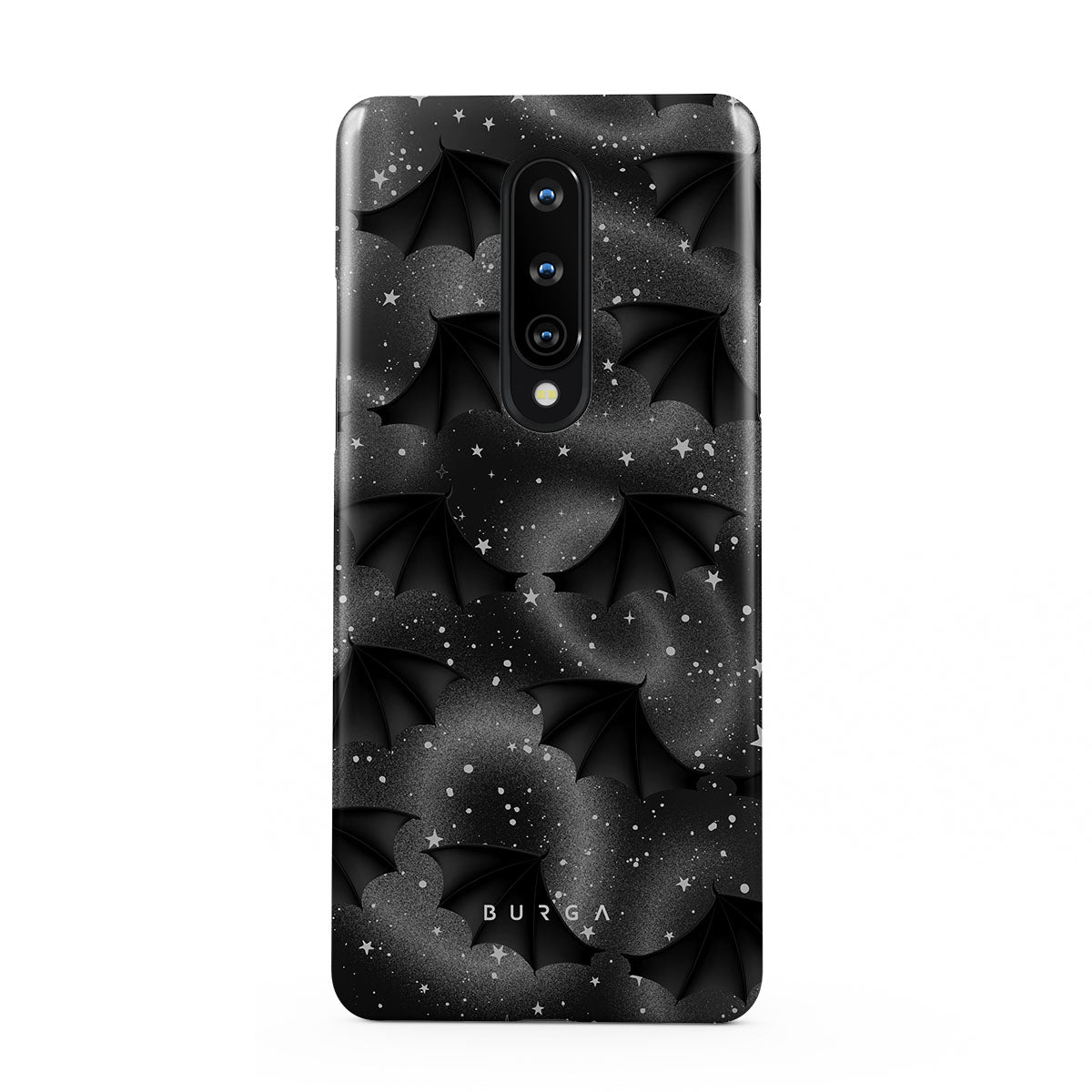 En este diseño: alas de murciélago, estrellas, remolinos místicos, cielo negro
