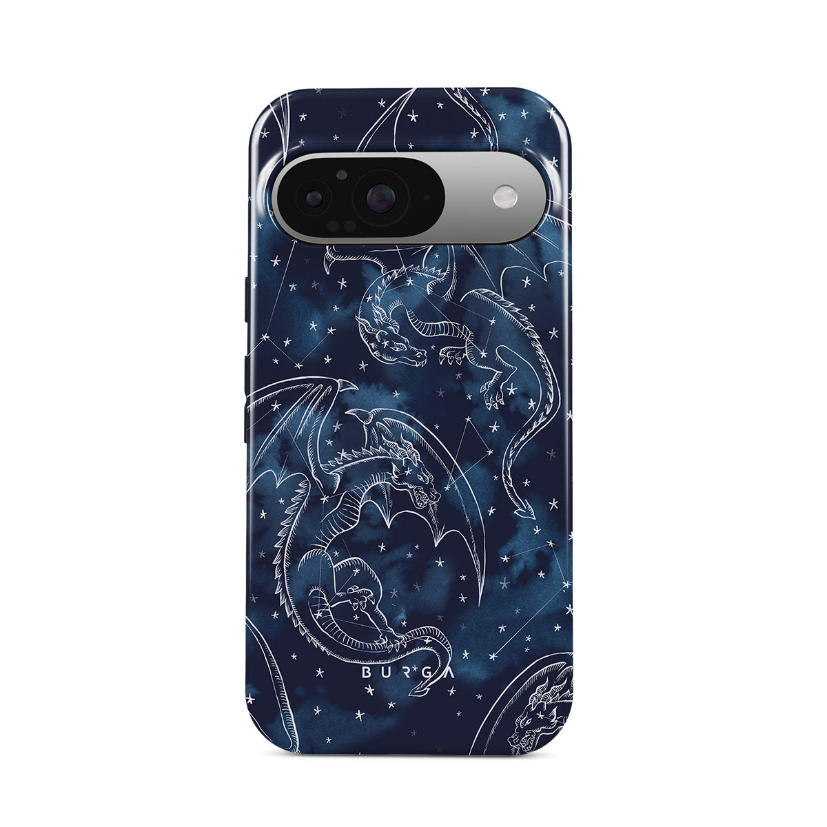 En este diseño: dragones, estrellas, constelaciones, cielo azul oscuro