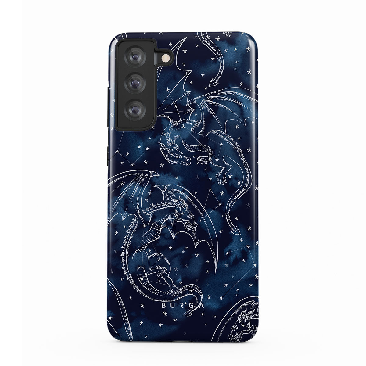 En este diseño: dragones, estrellas, constelaciones, cielo azul oscuro