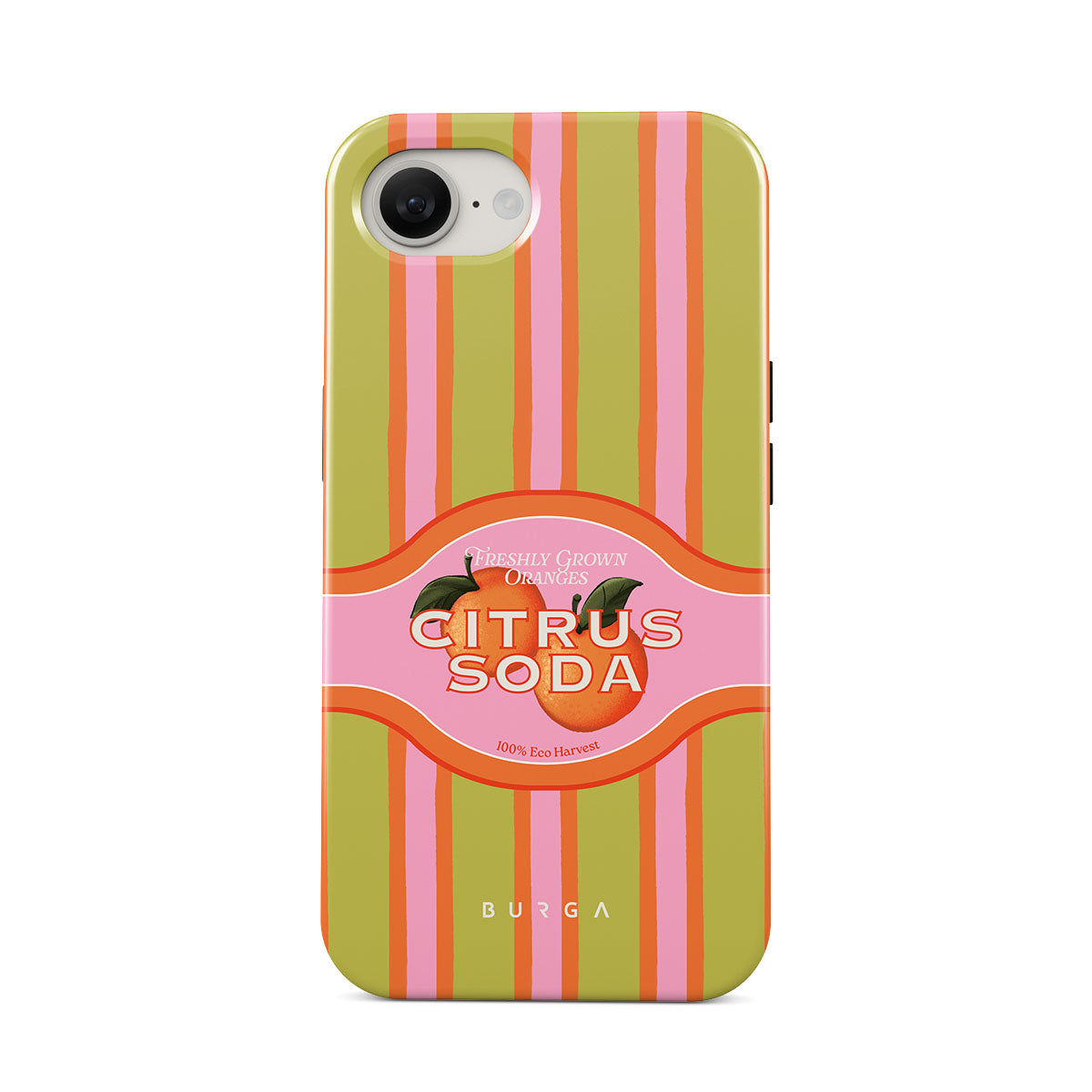 En este diseño: rayas de cítricos vibrantes, texto, plantas cítricas, mandarinas, pomelos
